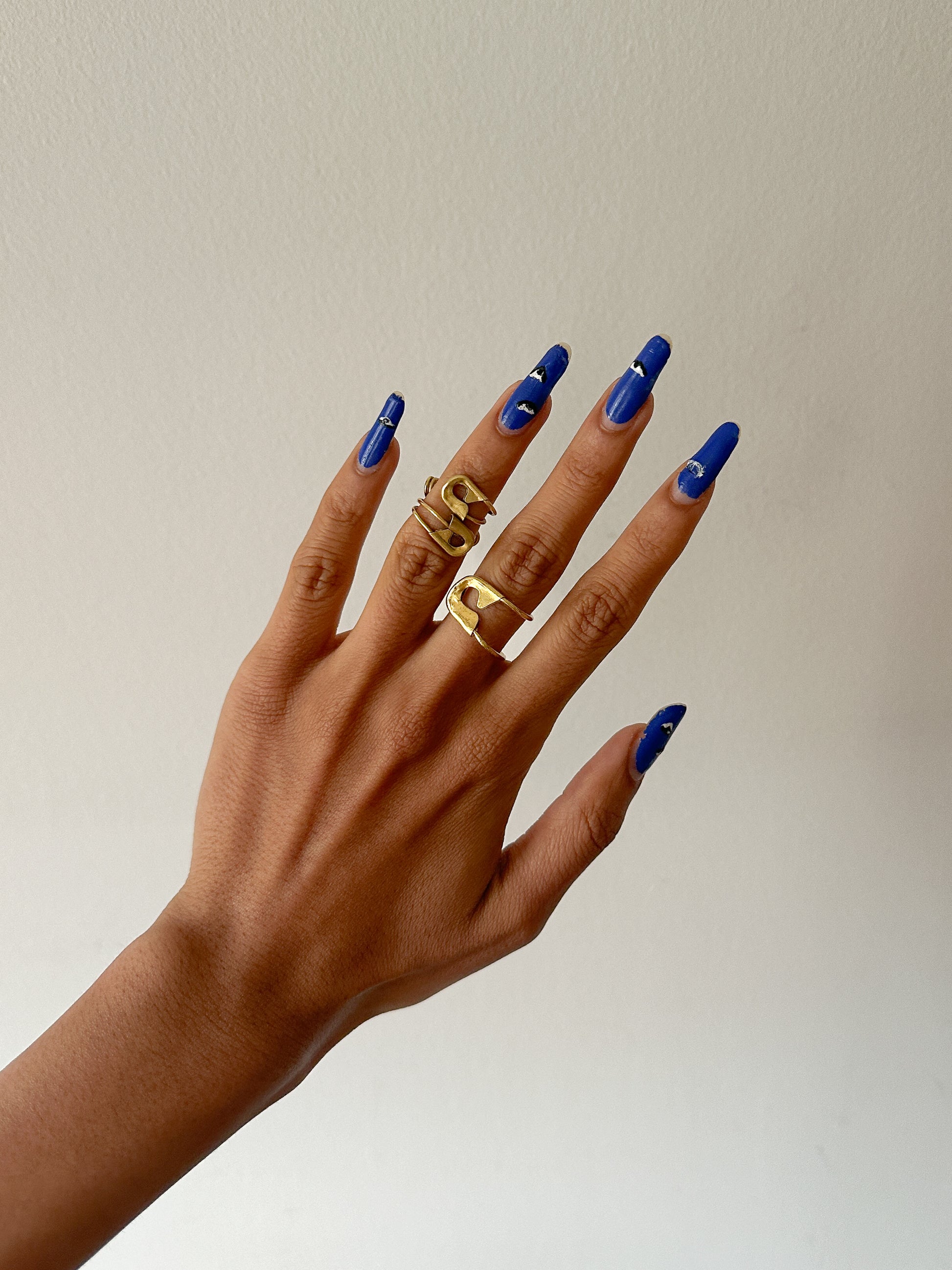 The Alchem Safety Pin Ring is created by upcycling vintage brass safety pins into ring form. Stack multiple on top of one another, size down for higher placement.